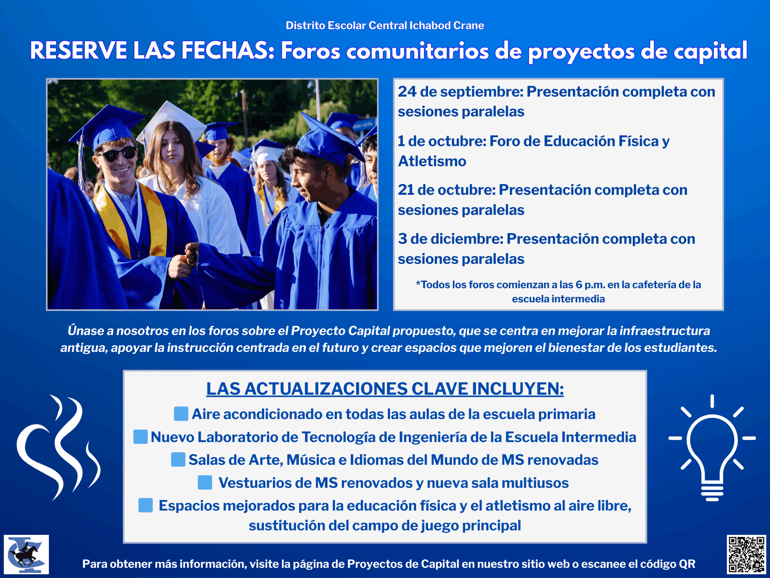 Lo invitamos a unirse a nosotros en una serie de foros comunitarios donde compartiremos detalles sobre el Proyecto de Capital propuesto (programado para votación comunitaria el 16 de diciembre).